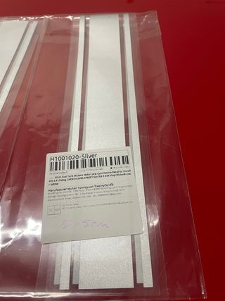 Dos adhesivos 50cm X 5 cm cada uno lineas plateadas por abandono de proyecto. Ideal guardabarros , deposito etc ( las fotos de los depósitos es para que se vea bien como queda)
