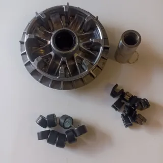 Conjunto de variador para Yamaha TMAX 530. Incluye las piezas necesarias para su instalación. Rodillos y guías con 50 Klm, quitado para poner un variador malossi - Variador principal. - Rodillos. - Guías. - Casquillo.