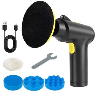 Pulidora y enceradora portátil en muy buen estado. Incluye cable USB y varios accesorios. - Disco de pulido principal. - Disco de lana. - Tres discos de esponja de diferentes texturas. - Llave de ajuste.