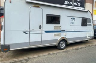 Caravana Knaus Sport 500. Es del año 2009. Tiene aire acondicionado a estrenar y mover a estrenar tambien con su toldo caravanstore. Caravana de 6 plazas y 3 ambientes de la marca Knaus con salón convertible en cama, cama de matrimonio y dos literas que cuenta con un separador tanto para separar las literas cómo la cama de matrimonio del salón. Cuenta con cocina a gas con 3 fuegos y fregadero con tapa de vidrio, microondas empotrado, calefacción, boiler de agua caliente, frigorífico trivalente de Dometic 105l, portón exterior al que también tenemos acceso por la cama de matrimonio, estabilizador Alko y oscurecedores y mosquiteras