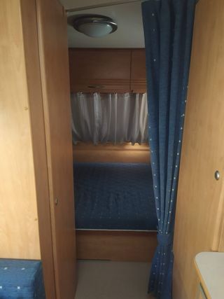 Año 2010, 6 plazas,buen estado. 3 ambientes: -consta de 2 literas, armario alto a ambos lados y arcón de almacenaje debajo de la litera - consta de salón grande ( mesa y sofàs en forma de “U”) convertible en cama de matrimonio, con arcones debajo y armarios altos, la zona de cocina con 3 fuegos( nunca se han usado), una nevera+congelador y armarios, cajones y vitrina. -Cama de matrimonio de 1,60 ancho, con arcón debajo (acceso desde fuera y dentro) + zona aseo (pica con espejo y armariosh y en otro compartimento el inodoro+ducha 3 claraboyas,mosquiteras y cortinas Calefacción,aire acondicionados no funciona( revisar)
