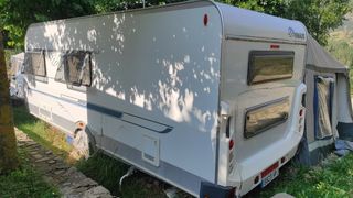 Caravana del 2007 SIN HUMEDAD! Con documentación. 3 ambientes, 6 plazas. Distribuido en 2 literas, comedor convertible en cama y cama de matrimonio (colchones nuevos). Dispone de calefacción Truma, nevera grande trivalente con congelador, cocina a gas con 3 fogones (nunca usada), soporte TV, antena TV, mucho almacenaje, con arcones con acceso desde exterior debajo de literas, cama de matrimonio y lavabo quimico. Avance y sobre avance, esta incluye: 2 sofa camas(colchon nuevo), armarios para almacenaje, mesa auxiliar, parquet, pingüino etc. Cocina 3,60x2 ,cocina 5 fogones+horno, 2 neveras, etc.lista para empezar.NEGOCIABLE