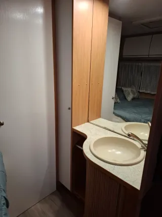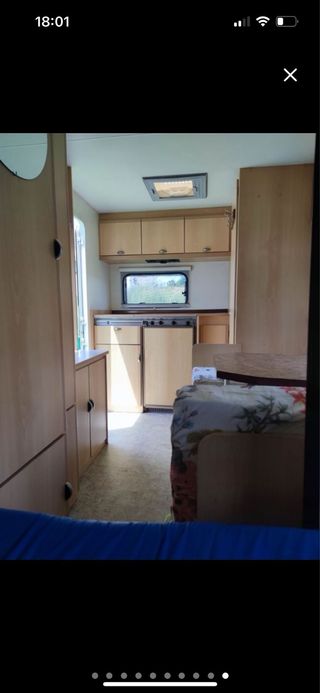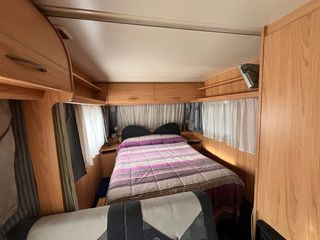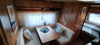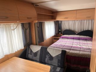 Año 2010, 6 plazas,buen estado. 3 ambientes: -consta de 2 literas, armario alto a ambos lados y arcón de almacenaje debajo de la litera - consta de salón grande ( mesa y sofàs en forma de “U”) convertible en cama de matrimonio, con arcones debajo y armarios altos, la zona de cocina con 3 fuegos( nunca se han usado), una nevera+congelador y armarios, cajones y vitrina. -Cama de matrimonio de 1,60 ancho, con arcón debajo (acceso desde fuera y dentro) + zona aseo (pica con espejo y armariosh y en otro compartimento el inodoro+ducha 3 claraboyas,mosquiteras y cortinas Calefacción,aire acondicionados no funciona( revisar)