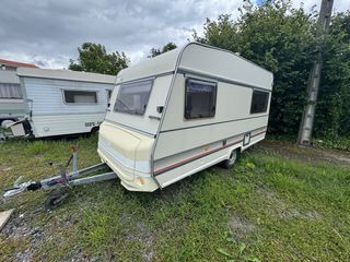 Se vende caravana de menos de 750kg. Bien cuidada, siempre guardada a cubierto. - Consta de 2 ambientes: salón delantero convertible en cama de matrimonio y salón trasero convertible en 2 literas. - Cocina de 2 fuegos, fregadero, nevera trivalente, baño con casette thetford. - Estabilizador marca Alko, portabicis Fiamma para dos bicis, ruedas cambiadas en 2024. 750 kg-tik beherako karabana salgai. Ondo zainduta, beti babesean gordeta. - 2 giro: aurreko egongela ohe bikotzean bihurtzen da, eta atzekoa 2 literatan. - Sukaldea, hozkailua eta komuna thetford casettearekin. - Alko estabilizadorea, eta Fiamma bizikleta-eramatekoa.