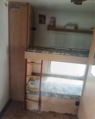 Caravana Burstner 5 plazas con ficha verde -750kg Cama matrimonio muy amplia 1.50x200 ,litera con cama de 120cm bajo( salón anulado ) y arriba de 80cm, largo 196cm. (Fija)Posibilidades de modificar a salón subiendo litera (manitas) Muebles y armarios por toda la caravana. Wc tipo casette y aseo amplio. Cocina 3 fuegos, nevera 220v Mástil 📺 Avance y tienda cocina Estabilizador para viajar seguro. No humedades No hace falta ITV ni seguro. Arcón amplio para rueda repuesto, butano, tablero de luz con enchufe para trabajar en el camping y depósito de agua potable para cocina y aseo. (((Mover, mando, batería))))