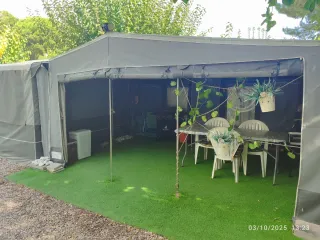 Tiene documentación, interior restaurado, avancé con puerta corredera y protector térmico techo. Sobreavance .cocina totalmente equipada, trastero, aire acondicionado, situada en camping Illa (Montaña) , a solo 50 minutos de Barcelona.Se vende con todo, lista para disfrutar de la naturaleza.