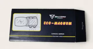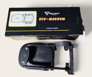 Espejo auxiliar diseñado para acoplarse a los espejos retrovisores originales de un vehículo, proporcionando un campo de visión ampliado necesario al remolcar una caravana o remolque ancho. Uso y función: Se utiliza para mejorar la visibilidad y reducir los puntos ciegos al conducir con remolques, ya que la caravana a menudo bloquea la visión trasera normal. - Diseño para caravanas. - Marca Smat Nord. - Modelo Eco-Magnum. -1 pieza