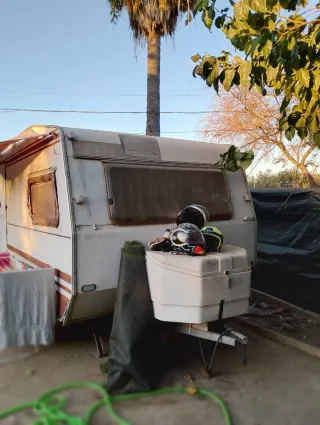 Caravana remolque en buen estado. 2470x2100 total 6215mm -papeles españoles - avance y mesas sillas etc incluidos. - Interior con asientos y mesa. - Cocina equipada con frigorífico. - Ventanas con cortinas. -Dos estancias. Dos camas de 135 y litera de 90.