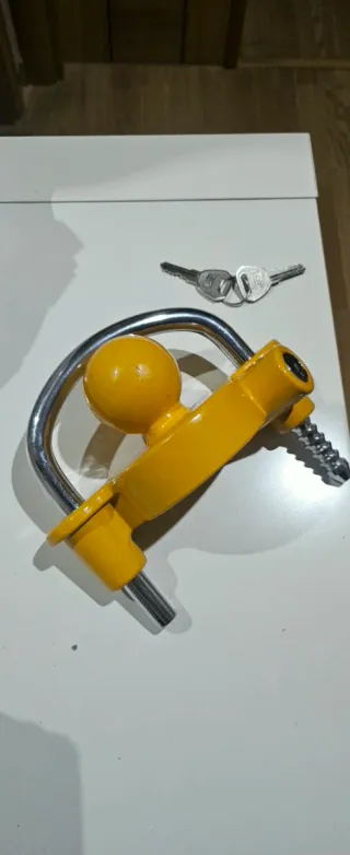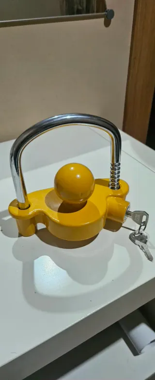 Dispositivo de seguridad amarillo para caravanas o remolques. - Diseño robusto con acabado brillante. - Incluye dos llaves. Nunca lo he usado