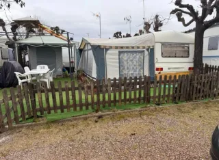 Caravana instalada en Cámping Trillas en muy buen estado, con papeles y todo de origen. Con frigorífico trivalente y enganche estabilizador Alko. No requiere seguro ni matriculación ni ITV. Dos ambientes con dos camas de matrimonio convertibles en sofá con mesa, y una litera. Incluido; avance Ticamo, sobreavancé con laterales, cocina equipada con pica y desagüe, microondas, nevera, y cocina de 4 fuegos con horno, mesas y sillas de exterior, suelo de losetas en toda la parcela y de lamas PVC en avancé y cocina, y armarios de resina. Temporada pagada hasta marzo. Posibilidad de quedarse la parcela. A finales de febrero desmontamos.