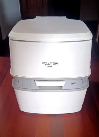 Baño portátil de la marca Porta Potti, modelo QUBE 165. Ideal para usar en caravanas, campers o para camping. - Color blanco y gris. - Capacidad de 15L para el depósito de agua limpia y 21L para el depósito de residuos. Incluye líquido de baño para desinfectar y limpiar