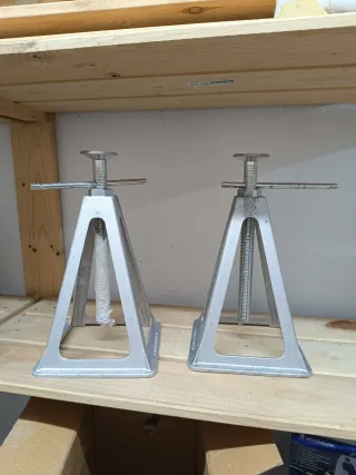 Juego de dos caballetes taller robustos para vehículos 4x4 con gran capacidad de elevación. Levantalo con seguridad. Muy robustas. Usadas con vehiculos de 3500 kg sin problemas y caravanas. - Capacidad de carga: 6 toneladas. - Diseño de gran altura para mayor versatilidad 60 cm altura maxima Hago envios #montero #landrover #toyota #landcruiser #pajero #isuzu#caravana #caballete #taller #coches #camper
