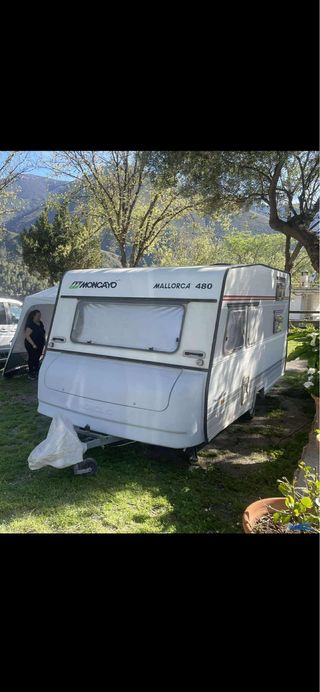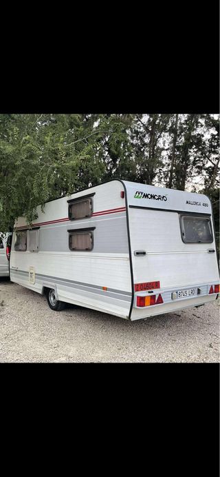 Caravana Mallorca 480 Matricula roja Chasis Alko Estabilizador Alko Aire acondicionado marca Gree inverter 2.500 frigorías Itv hasta mayo 2026 6 Plazas divididas en dos camas de matrimonio convertible en dos salones y dos literas. Cuarto de baño completo con casette extraible desde el exterior. Regalo avance en perfectas condiciones. Tiene mejorado los enchufes incluyendo uno en cada cama con su repisa para cargar móviles etc También tiene puertos usb. La cocina la tiene quitada y la nevera original que la doy con la caravana. Cortinas nuevas de hace 1 año y colchones de la literas nuevos