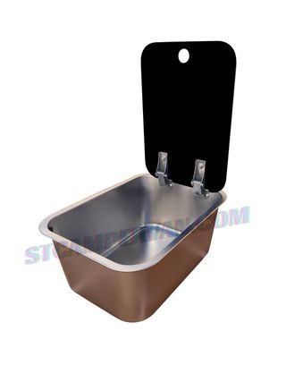 STCAMPERVAN.COM Pica camper con tapa 26,5x32,5 de acero inoxidable Profundidad 15cm ( es el tamaño mas pequeño que tenemos y se utiliza sobretodo para furgonetas vw,trafic,vivaro) Incluye Grifo 12v agua fria Sumidero acodado Ideal para barco, caravana, furgoneta camper