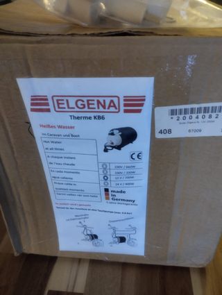 Termo eléctrico Elgena KB6 para caravana y barco. Calienta agua de forma instantánea. - Modelo: Therme KB6 - Voltaje: 12V / 200W - Fabricado en Alemania - Incluye instrucciones de instalación para bomba de inmersión (máx. 0.8 Bar)