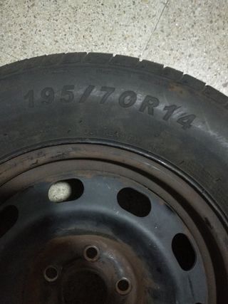 Rueda de coche en buen estado. - Dibujo de la banda de rodadura visible. - Llanta de goma negra.