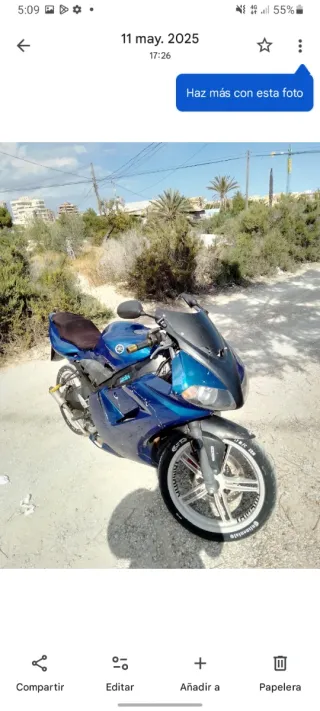 Moto deportiva Yamaha TZR 50 en color azul. - Diseño deportivo. - Ruedas con detalles blancos. Tiene top rosa 80 recién rectificado, embragues reforzados polini recién puesto, cigüeñal reforzado, carburador 24 polini, escape yasuni r2, rueda trasera nueva, sillin nuevo, puño rápido, la cupula está rota en general todo el encarenado está roto yo las tengo con bridas tengo también limitador electrónico carburador de casa deposito rojo encarenado izquierdo en gris y rojo algunas en azul y en negro, el motor prácticamente tiene casi todas las piezas nuevas reforzadas no tiene ni un kilómetro la tengo en el mecánico asta que la compren