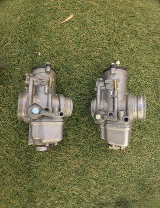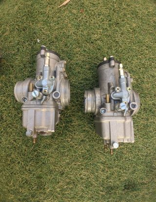 Vendo dos carburadores Dell'Orto PHM 40 con toberas de goma, recambio de chicles,chimeneas , tensores de cable curvos y cornetes de aire con rejilla de aluminio uno largo y uno muy corto. no tienen el mecanismo de bomba de aceleracion . Los tenia montados en un motor ducati Monster 900 en un chasis Pantah . En perfecto uso . SE VENDEn JUNTOS