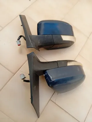 Par de retrovisores exteriores para Ford Focus de los años 2008 y 2009. Color azul. - Carcasa de plástico. - Incluye intermitente lateral.