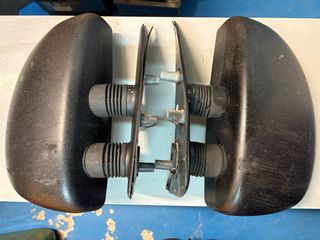 Juego de carcasas para los retrovisores de un Seat Leon MK3. Piezas de recambio en color negro mate pero están para pintar. Una de ellas tiene una patilla rota. Ref 5F0 857 537 (izq) y 5F0 857 538 (der)