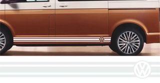 Vinilos decorativos para Volkswagen California T5, T6 y T6.1. Dale un toque distintivo a tu furgoneta. - Diseño de líneas blancas con logo. - Compatible con modelos T5, T6 y T6.1.