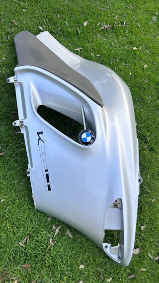 Tapa lateral de carenado para BMW K 1200 LT de primera generacion (hasta 2003), tambien es valida para segunda generacion, en color plata. En estado impecable - Pieza de plástico. - Incluye emblema BMW. - Inscripción K 1200 LT.