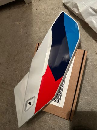 Carenado lateral derecho original para BMW M 1000 R y S1000R. Presenta un diseño deportivo con los icónicos colores M. - Color blanco con detalles en azul, negro y rojo. - Diseño deportivo M.