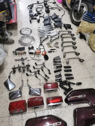 Piezas de despiece para Honda CB750 Seven Fifty. Se venden componentes sueltos o en conjunto. - Discos de freno. - Espejos retrovisores. - Pilotos traseros. - Carenados laterales. - Estriberas y soportes. - Palancas de cambio y freno. - Componentes eléctricos y cableado. - Partes de la suspensión y chasis.