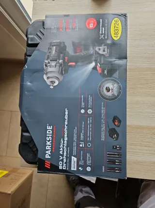 Pistola de impacto Parkside Performance de 20V con motor Brushless. - Modelo: PASSM 20-11 CA - NO Incluye batería y cargador - Par máximo: 1868 Nm - Velocidad de giro: 0-600/0-1250/0-1560 min - Velocidad de impacto: 0-500/0-1500/0-1900 min Sólo se ha abierto para extraer batería y cargador, incluye vasos.