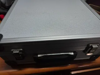 Taladro inalámbrico con acabado plateado y detalles en negro. ((((( CARGA PERO NO FUNCIONA SE VENDE LO QUE SE VE EN LAS FOTOS ))) Caja Taladro Batería Cargador - Diseño compacto y ligero. - Asa ergonómica para un mejor agarre. - Cierre de seguridad metálico.