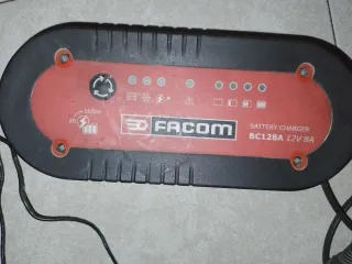 Cargador de baterías FACOM. - Modelo: BC128A - Voltaje: 12V - Corriente de carga: -Las pinzas son otras