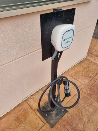 Cargador para coche eléctrico de la marca Iberdrola. - Modelo Wallbox. - Soporte metálico incluido. - Cable de carga enrollado. Conexión trifásica