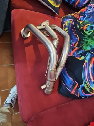 Sistema de tubos de escape para motocicleta, fabricado en acero inoxidable pulido. - Diseño de 4 tubos. - Conexiones soldadas. - Brida de montaje.