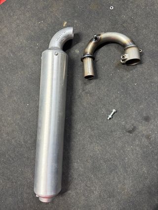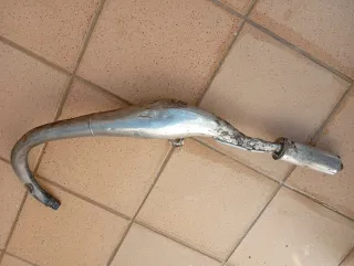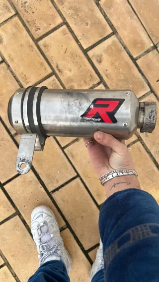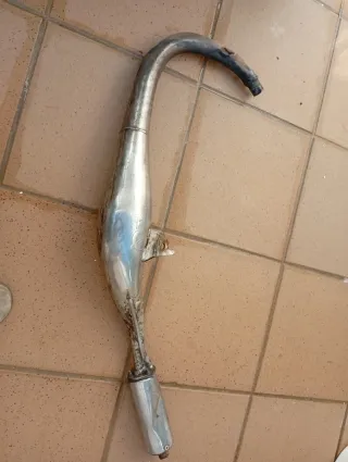 Escape para moto Rieju RR. Pieza metálica con forma curva. - Material: Metal - Color: Plateado