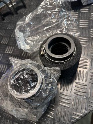 Dos filtros de aire para pit bike, uno de ellos en su embalaje original nuevos de 48/50mm rectos - Material de espuma. - Incluye abrazadera metálica. Varios repuestos mas de pit bike en mi perfil. Imr roan ycf rebel master orion pit bike kart derbi enduro cross