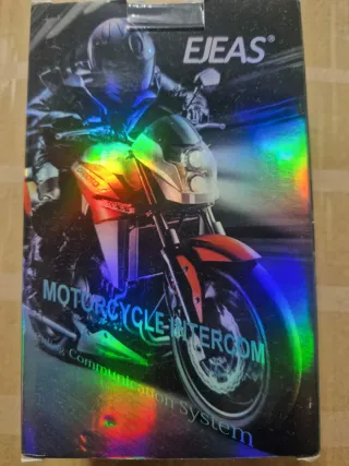 Sistema de comunicación para motociclistas. - Intercomunicador para moto. - Marca EJEAS. - Diseño con imagen de motocicleta.