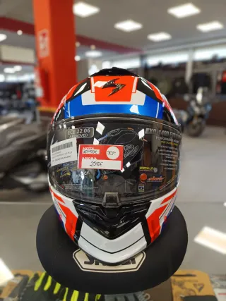 Casco integral Shoei XR1000 talla XS (53-54 cm.) alta gama Espectacular diseño Diabolic Zero (negro brillante con decoraciones en blanco y detalles en azul) Peso: 1.330 gr. Construcción en fibra Cierre de doble anilla Pinlock original instalado (antivaho) super efectivo Entradas de aire frontales y en la mentonera, más salidas en el spoiler trasero ("Aero Wing") Mentonera Sin golpes ni caídas. Tiene un poco rallada la visera (5ª foto), el resto está impoluto, tiene poquísimo uso. La espuma interior está perfecta. Con hueco a la altura de la oreja para los altavoces del intercomunicador. Hago envíos