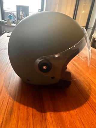 Casco Tucano Urbano El’Jettin 6.0 Verde Airborne Mate. Casco tipo jet de uso urbano fabricado en policarbonato de alta resistencia y una calota interior de EPS de doble densidad. Dispone de una amplia pantalla transparente de policarbonato con tratamiento anti-rayaduras. Los acolchados interiores están confeccionados de microfibra transpirable y analérgica con aplicaciones de malla Aero 3D, totalmente extraíbles y lavables. Correa con trabilla en la barbilla hecha de microfibra antirritante para mayor comodidad. Incorpora acolchado Neck Roll en la zona del cuello para mayor conf - Visera transparente. - Hebilla de cierre ajustable.