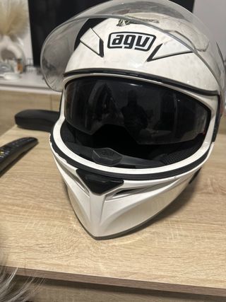 Casco de moto en buen estado de la marca Agv en color blanco y talla XL 61-62 No dudes en escribirme para dudas