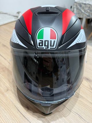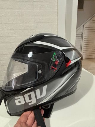 Casco de moto AGV K5 S en buenas condiciones,sin rasguńos ni rayadas,con gafas incorporadas,cieere de doble anilla,.con la pantalla transaprente ese precio y con la oscura con pinlock 20e mas,solo tiene un poco el forro de 1 almohadilla un poco desgastado pero poca cosa - Talla: SM - Color: (Añadir color) - Incluye: (Añadir qué incluye, p.ej., visera, bolsa) - Ligero y cómodo.