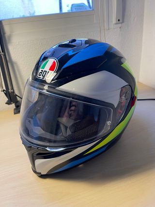 Casco de moto AGV con diseño de Valentino Rossi 46. AGV K-5 pinlock maxvision Rossi fast 46. Talla S de chico. Está en muy buen estado y no tiene caídas. Las almohadillas interiores están en muy buen estado. Tiene 2 años de uso no diario, solo de fines de semana. Las gafas de sol que lleva incorporadas bajan y suben manualmente, no funciona la pestaña exterior automática. La pantalla no está rayada. Siempre conservado en su funda, se entrega la original y su caja.