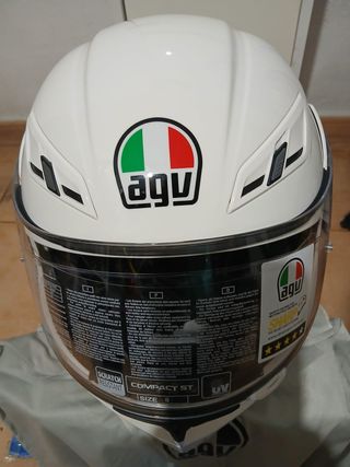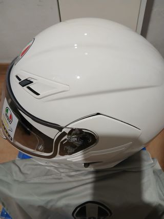 Casco modular AGV de color blanco, talla S. Ideal para motociclismo. - Diseño aerodinámico. - Visera con protección anti-rayaduras y UV. - Interior confortable. - Cierre seguro.