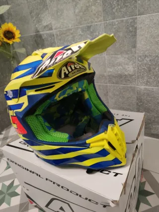 Casco Airoh para moto de cross y enduro poco uso en muy buen estado talla S 55 56 - Diseño llamativo en amarillo, azul y naranja. - Talla S.