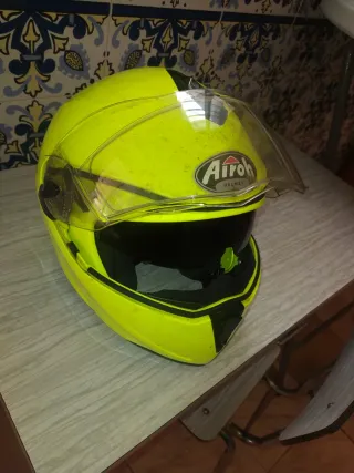 Casco de moto Airoh en color amarillo neón, con visera transparente y oscura - Diseño deportivo. - Marca Airoh Helmet.cierres rotos pero viceras nuevas
