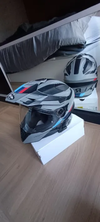 Muy poco uso unas 10 veces, regalo intercomunicador ejeas, cuatro marquitas de meterle en el baul de la moto, pinlock antivaho grande y pinlock solar Casco Airoh Commander 2 con un diseño deportivo y moderno. TALLA L. - Diseño con franjas tricolores (azul, blanco y rojo). - Visera transparente. - Inscripción de la marca AIROH en la parte frontal.