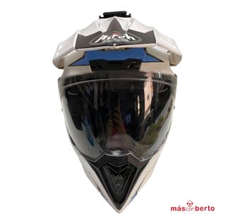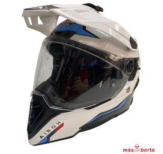 Casco de motocross de la marca Airoh, talla L. - Diseño con detalles en blanco, azul y rojo. - Visera pronunciada. - Interior con acolchado. - Usado dos o tres veces por el pueblo. - No tiene rutas.