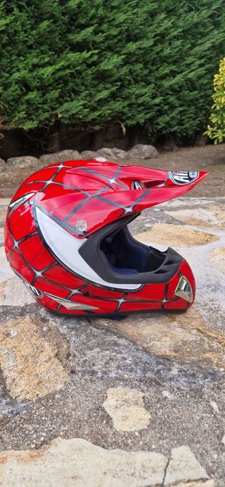 Casco motocross Airoh, diseño Spiderman. Está en perfecto estado, como nuevo, usado solo 4 o 5 veces. Super ligero, solo 1.020 gr. Interior desmontable y lavable. Con funda original. Regalo pantralón XC-TING y camiseta NO FEAR. Tengo un botas Alpinestars TECH 8 en venta, oferta de todo el conjunto, 250€ - Talla: M (57-58) - Marca: Airoh - Diseño: Spiderman - Tipo: Motocross/Enduro