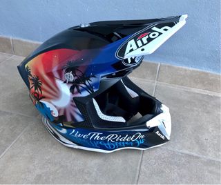 Casco de moto con un diseño llamativo y colorido. - Gráficos de chica y COOL. - Visera integrada. - Marca Airoh. Talla L. Tiene un tornillo de la visera roto. Lo vendo por no usar