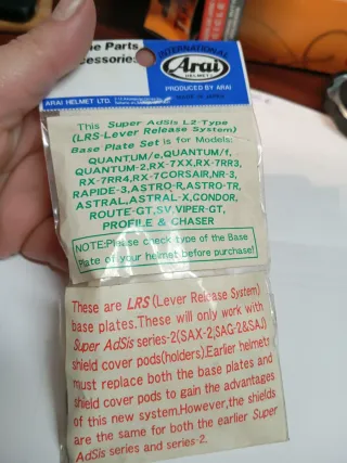 Mecanismo interior para casco ARAI Sirve para los siguientes modelos ( RX-7RR IV, RX-7 corsair, quantum, F.Astro, J.Astro, gt, cóndor, viper,chaser, Viper gt
