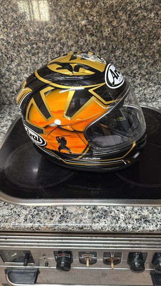 Casco de moto Arai del piloto Tadayuki Okada talla S - Casco del piloto Tadayuki Okada. - Arai Astro-r - Talla S - Le falta una entrada de aire superior derecha pongo foto. - Casco con signos de desgaste y alguna picada que ha sido desimulada. - Arai Shoei Agv Bell Nolan Agv Bieffe Ls2 Nzi Corsair Rx7v Rx7gp Condor Sv Quantum f Scorpion Hjc Rx7 Corsair Rx7v Rx7x Rx7 rr4 Quantum f Scorpion hebo Trial Suomy Dainese Alpinestars